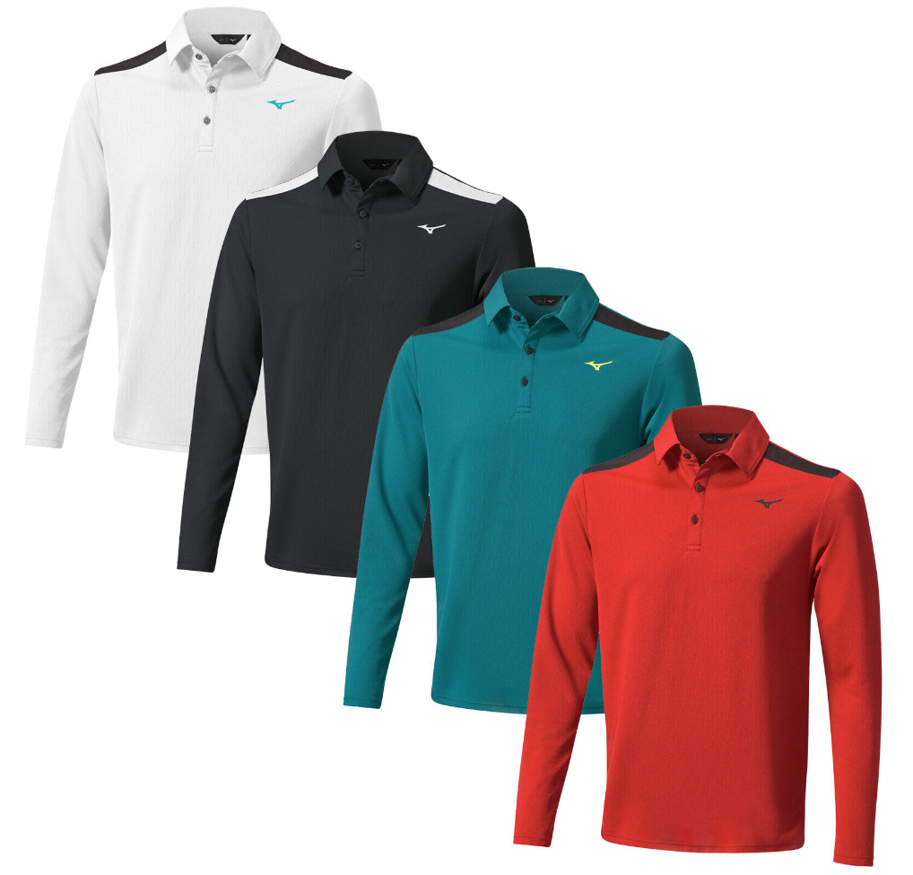 Mizuno Mens Winter Elite Long Sleeve Polo Shirt Golf Move Tech Thermo Top